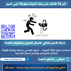 “شركه كشف تسربات المياه بحوطه بني تميم” تُعد مؤسسة الأمان المثالي واحدة من الشركات الرائدة في مجال كشف تسربات المياه بحوطة بني تميم، حيث